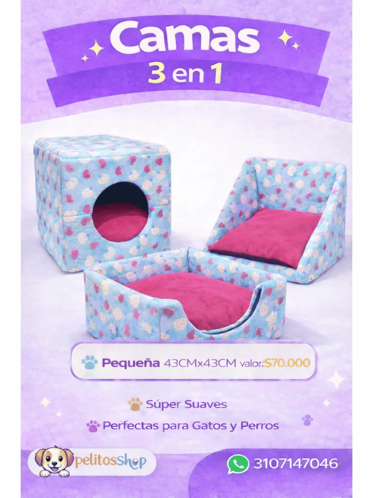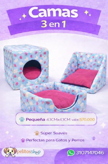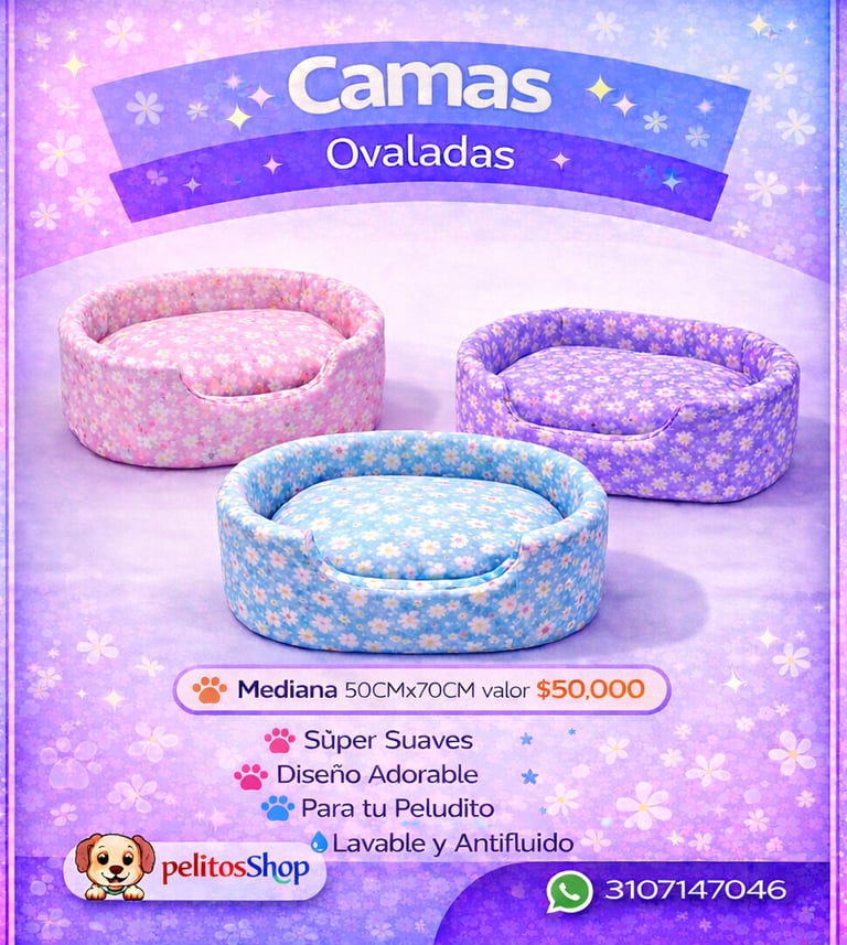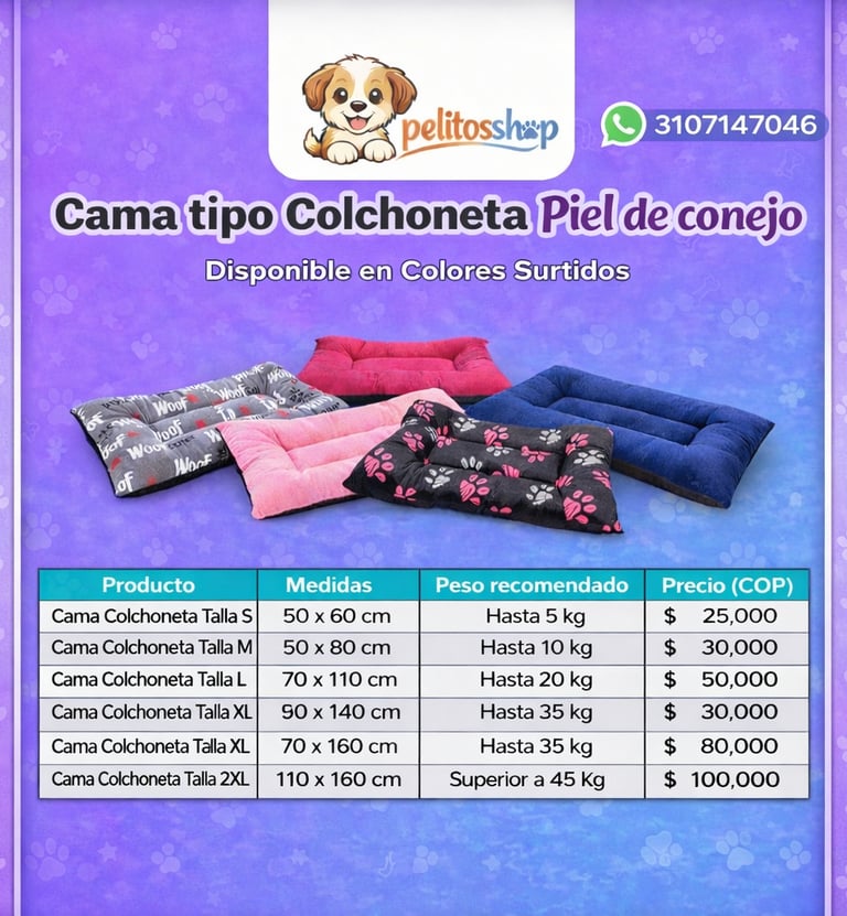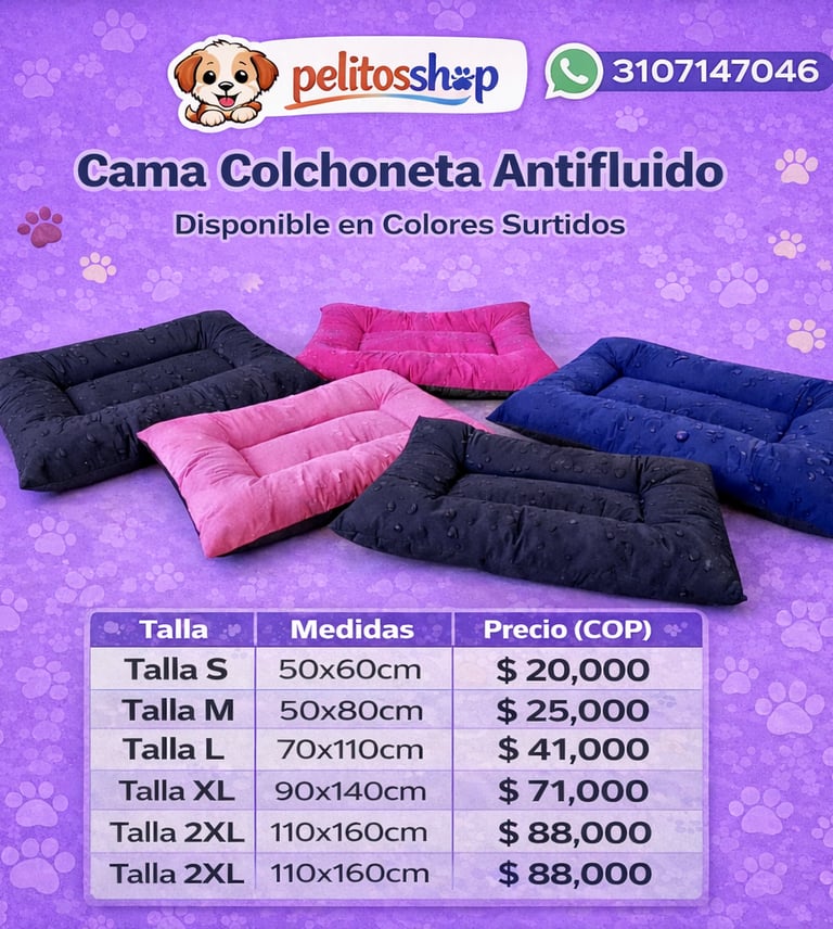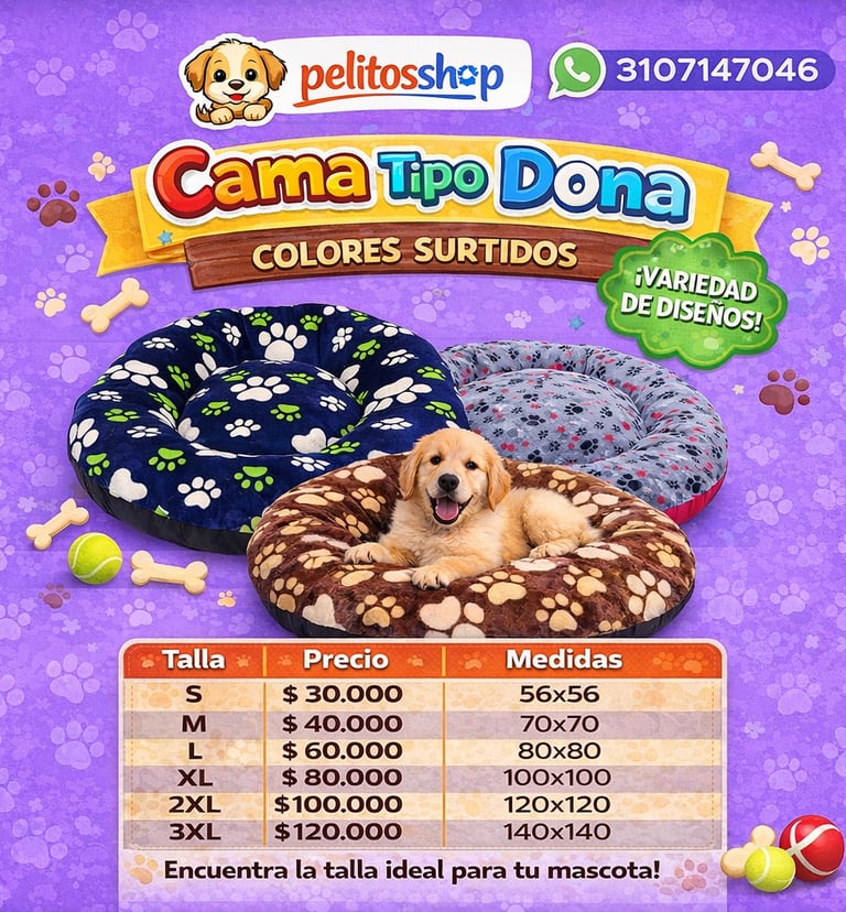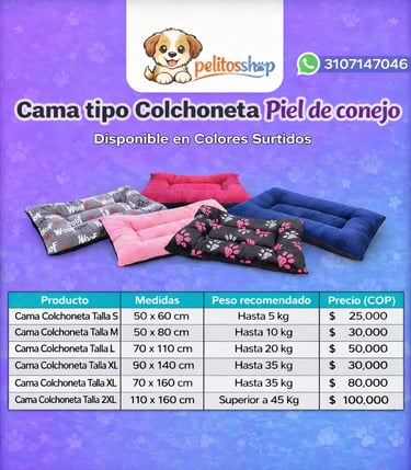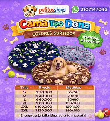 Súper suave, acolchada y perfecta para el descanso de tu peludo. Disponible en colores y diseños surtidos