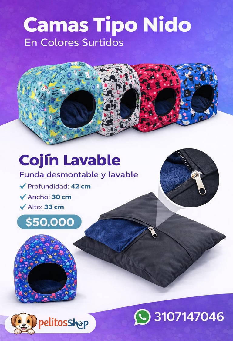 Nuestras camas están diseñadas para brindar máximo confort y además cuentan con cierre para facilitar el lavado, para que siempre estén limpias y frescas. ✨