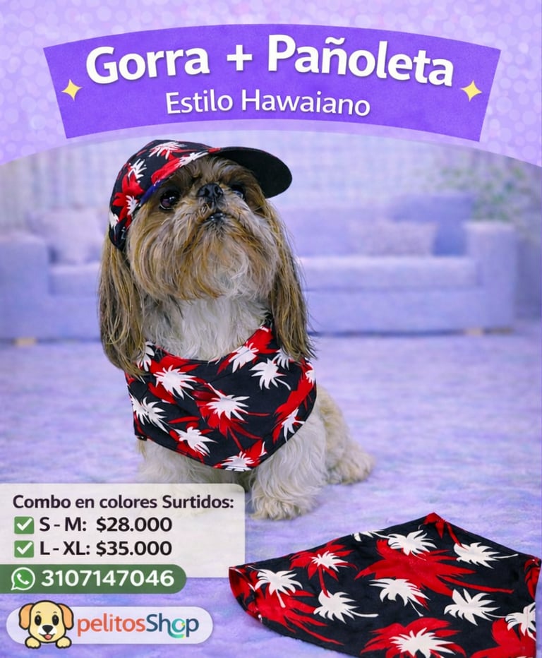 Con estampado tropical vibrante que le da a tu peludito un look fresco y divertido.